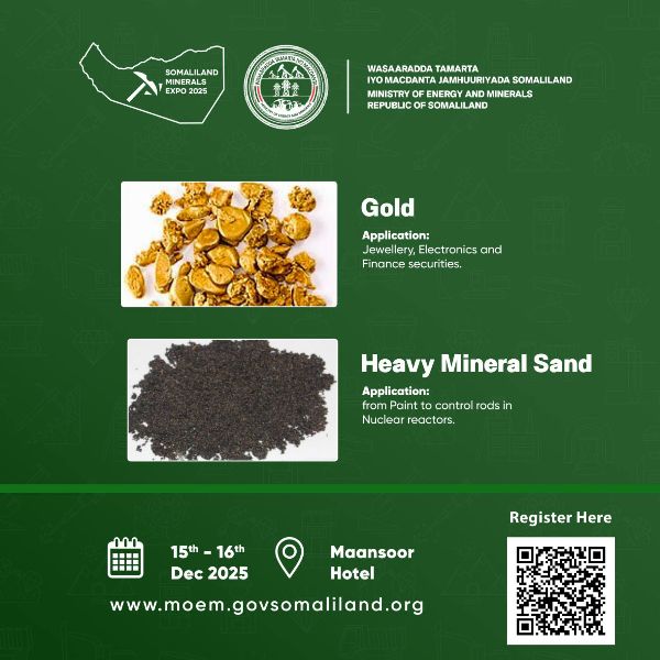 The Somaliland Minerals Expo 2025 will be held in Hargeisa on 15th –16th Decembe...